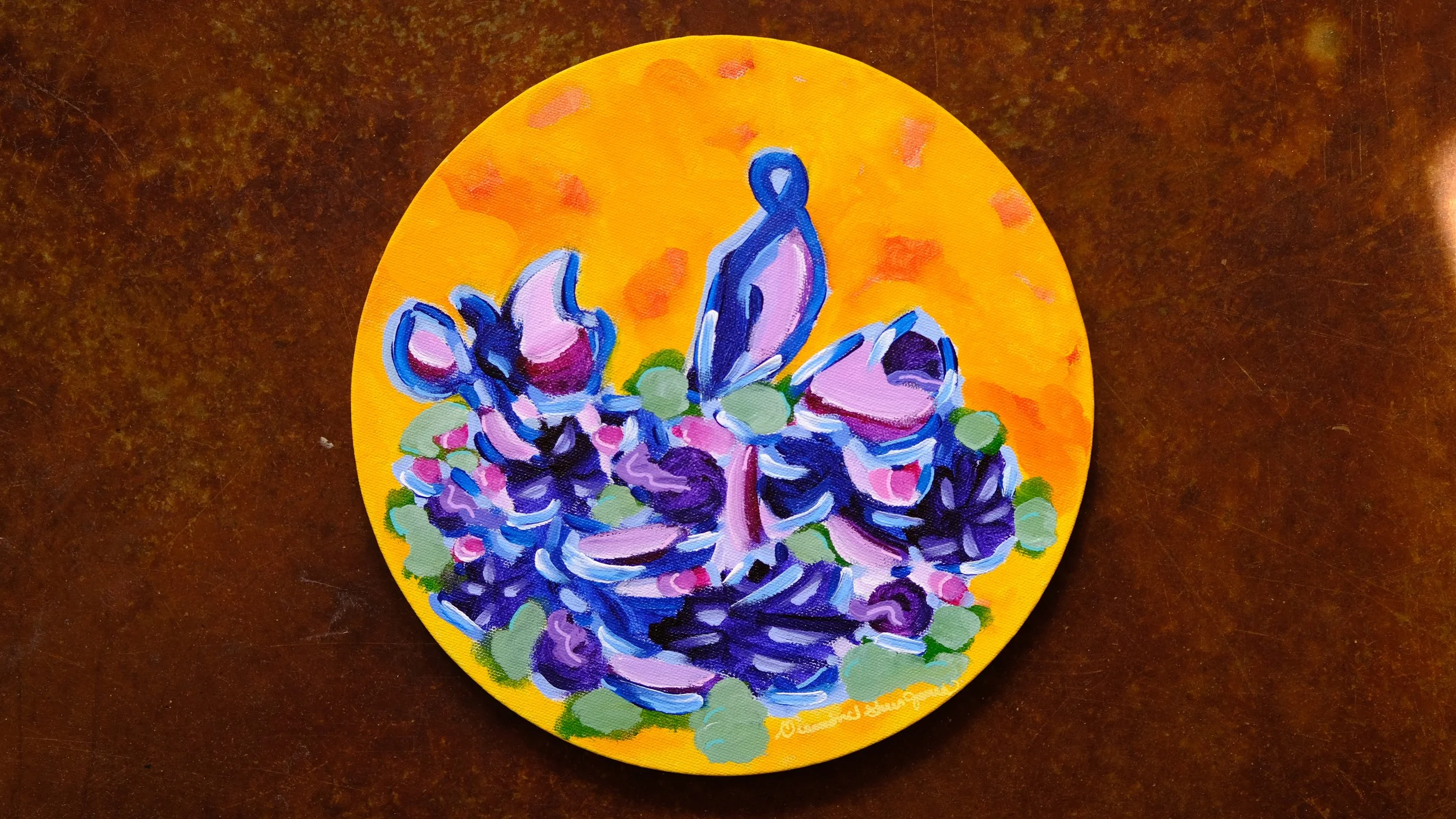 acrylic & oil pastel on 16” round cotton canvas with 3/4” sides